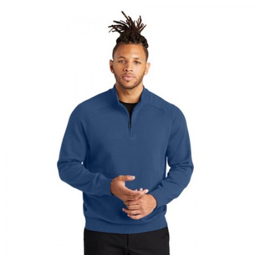 The Mercer+Mettle 1/4-Zip Sweater is a versatile and stylish addition to your wardrobe. Made from a blend of 90% cotton, 9% nylon, and 1% spandex, this sweater is both comfortable and durable. The rib detailing on the collar, cuffs, and hem, combined with a modern cadet collar, creates a sophisticated look that is perfect for both work and play. The sweater features a dyed-to-match coil zipper with a black pull, making it easy to slip on and off, and fully-fashioned raglan sleeves for a comfortable fit. With the added convenience of being easy to care for, this 1/4-zip sweater is a must-have for any wardrobe. And with the option to have your custom logo embroidered, you can add a professional touch to your look.